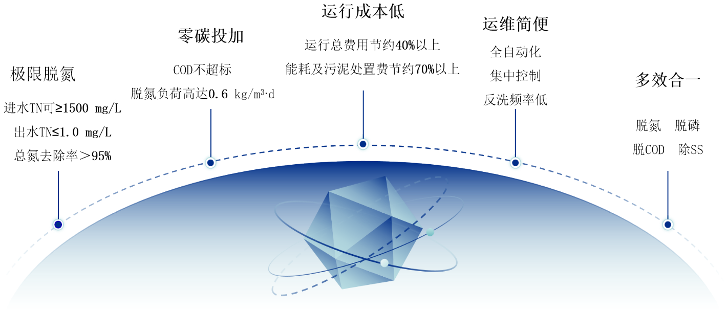 滤池采用一体化集成设计,针对不同处理场景和现场占地特殊需求,提供适合客户现场的布置方案,处理能力从500~100000m³/d,满足大水量、低总氮的极限脱氮要求,出水总氮可稳定达到1mg/L以下。
